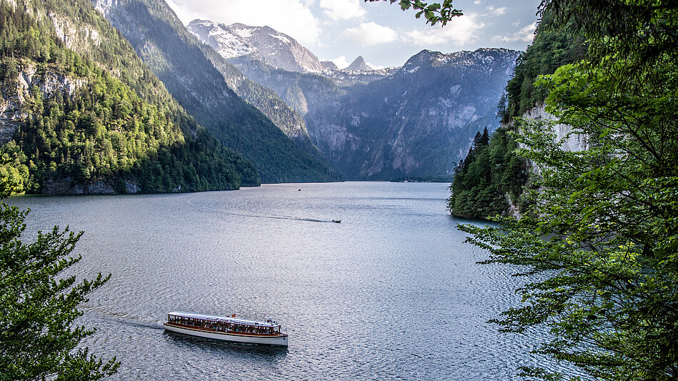 Der Zugang zum Königssee erfolgt in der Regel über den Ort Schönau am Königssee, wo sich die Bootsanlegestelle befindet. Von hier starten die berühmten Elektroboote, die Touristen geräuschlos über den See bringen. Eine klassische Tour führt bis zur Wallfahrtskirche St. Bartholomä, wer mehr Zeit hat, kann weiter bis nach Salet fahren, um von dort Wanderungen zum idyllischen Obersee zu unternehmen.